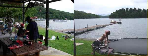 着いてみるとそこは、山奥の秘境といった雰囲気でとても水がキレイなウェイクボードパラダイスでした。トーイングボートはサードのクリーバーで、引き波も大きく、ゴキゲンなコンディションです。